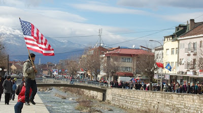 Kosovo turns one today. At 3:37 pm, I think. Shadervan, the main square, is full of people and part of the road running through town has been closed to cars. Some photos from my walk around town earlier: